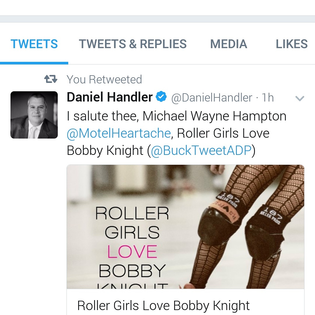 March 31, 2017 Thanks Daniel Handler Michael Wayne Hampton Leave a comment Woke up to this great shout out from Daniel Handler (aka Lemony Snicket)! So nice